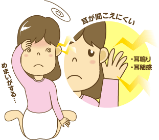 内耳(聞こえの神経)でおこる場合は、突発性難聴などがあります。原因は不明なことが多く、めまいや耳なりもいっしょにおこることがあります。